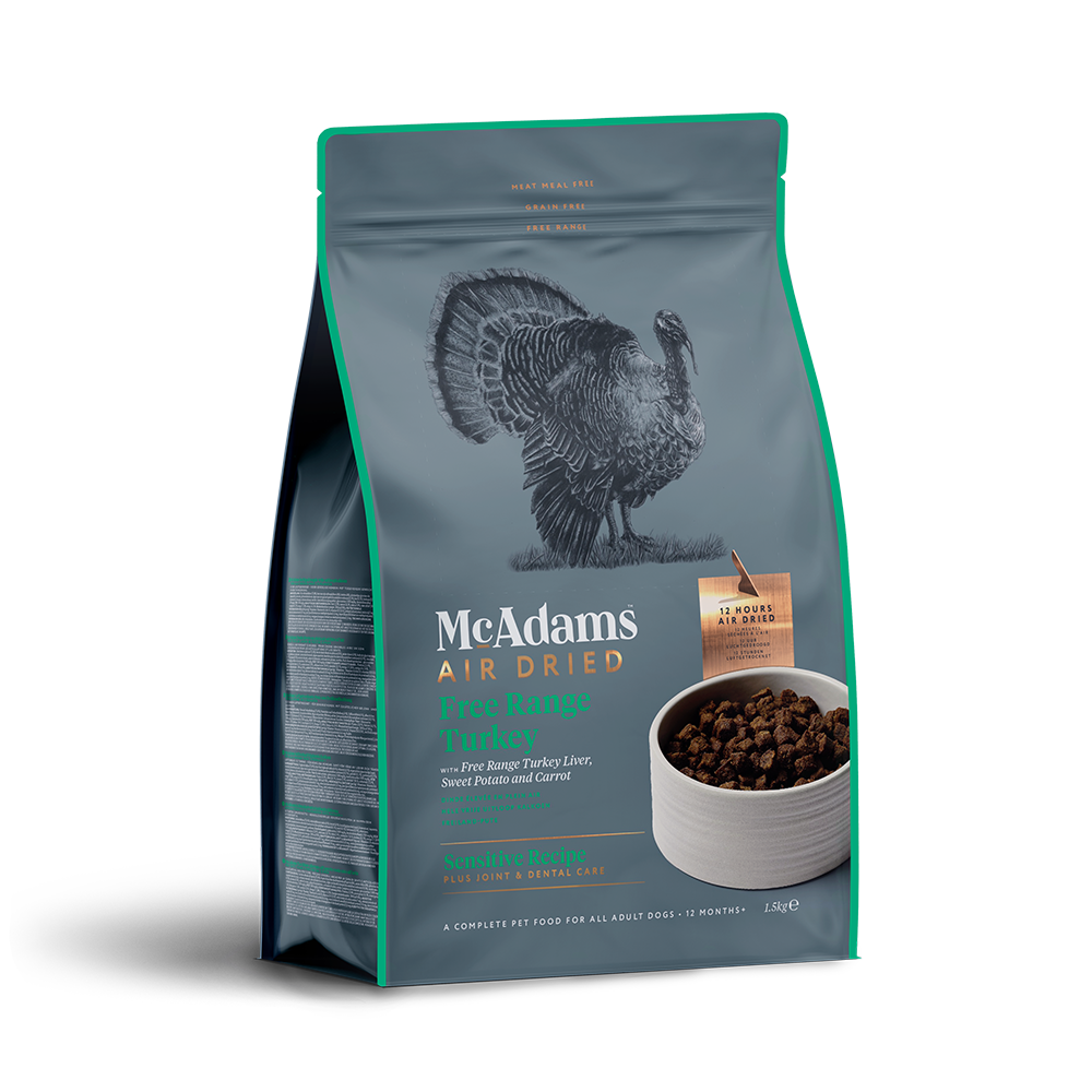 Rich, delicious and packed with superfoods, McAdams Air-Dried Free-Range Turkey is a natural, complete and ultra-digestible food ideal for sensitive dogs.